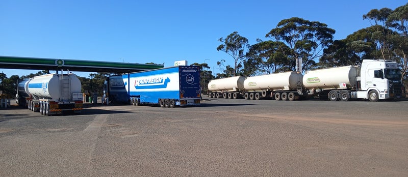 B-doubles and a triple road train at Norseman Roadhouse. This is what to expect too have passing you on a regular basis.